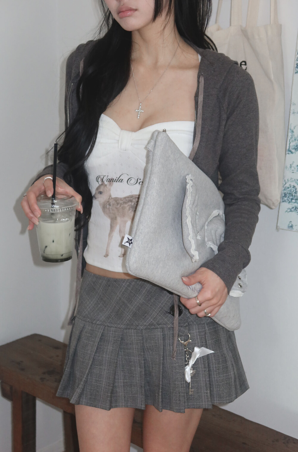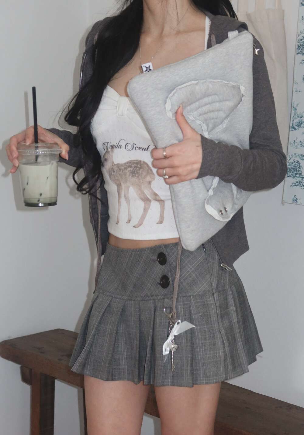 원단의 자연스러운 말림 현상이 매력적인 제품으로, 귀여운 날개 포인트로 룩의 완성도를 높일 수 있습니다! 또한, 날개 아일렛 부분에 키링을 부착하실 수 있어 활용도가 더욱 뛰어납니다.