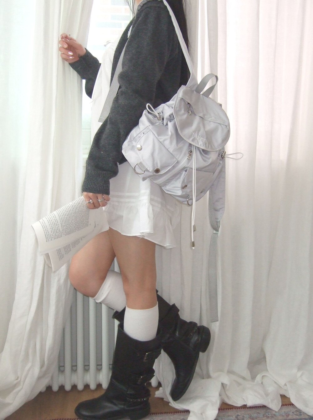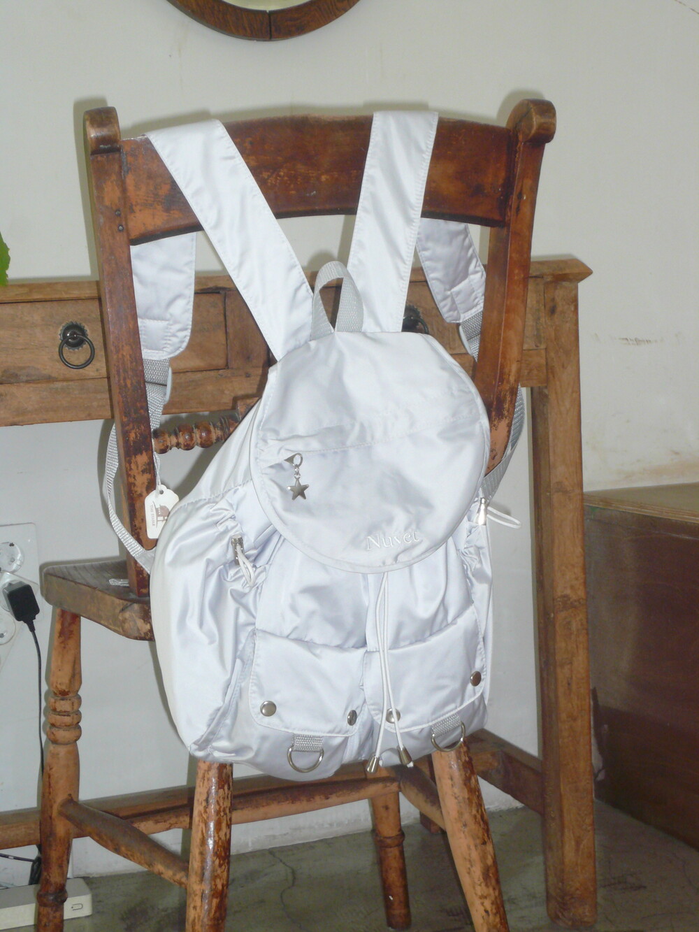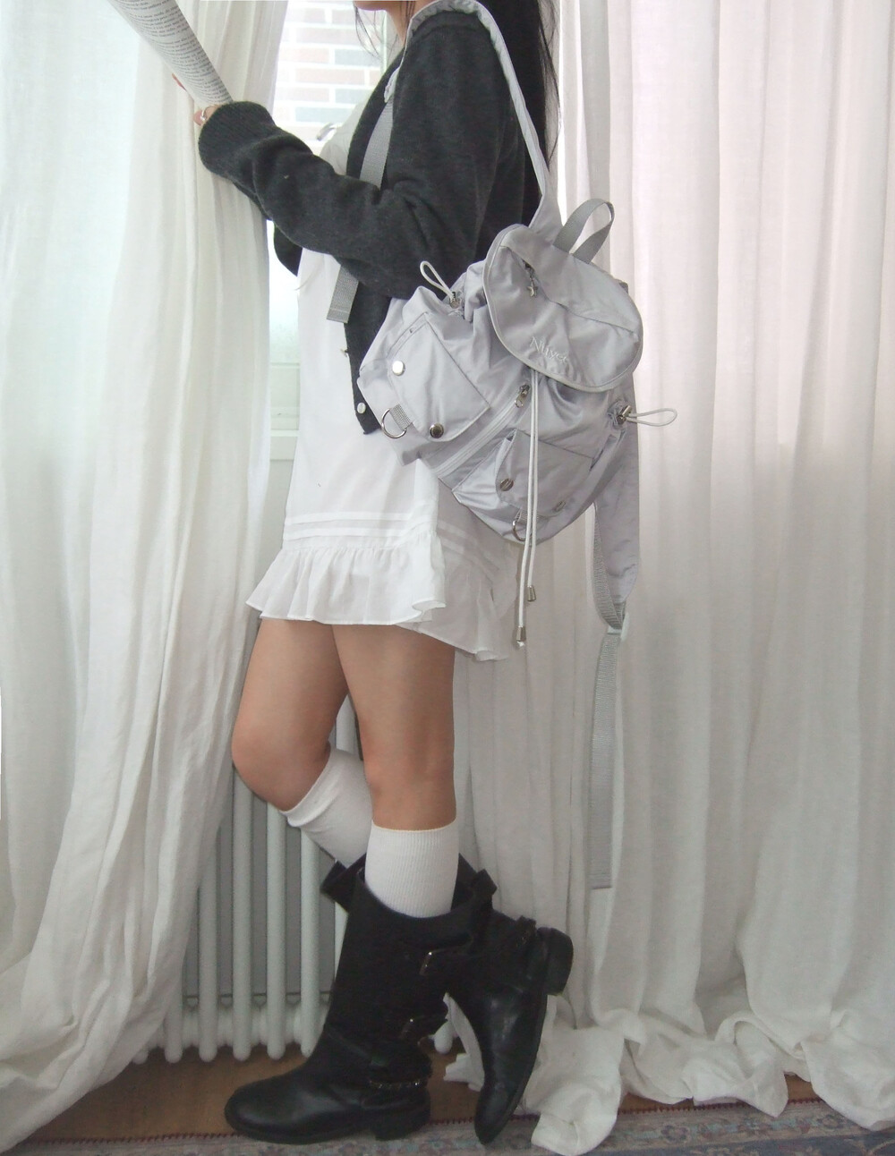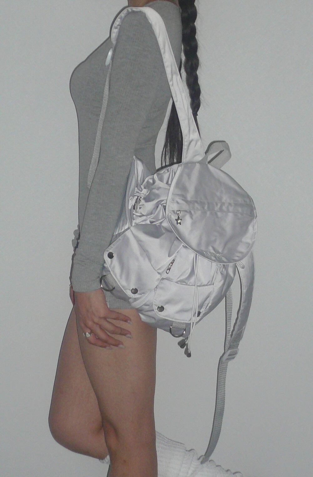 많이 넣을수록 둥글어지는 형태가 귀여운 백팩입니다. 귀여우면서 둥근 느낌으로 제작하고 싶어 단단한 원단보다 원단이 조금 얇지만 튼튼한 원단을 사용하여 제작하게 되었습니다. 앞쪽 자수 디테일과 별 모양 지퍼가 매력적인 제품입니다.