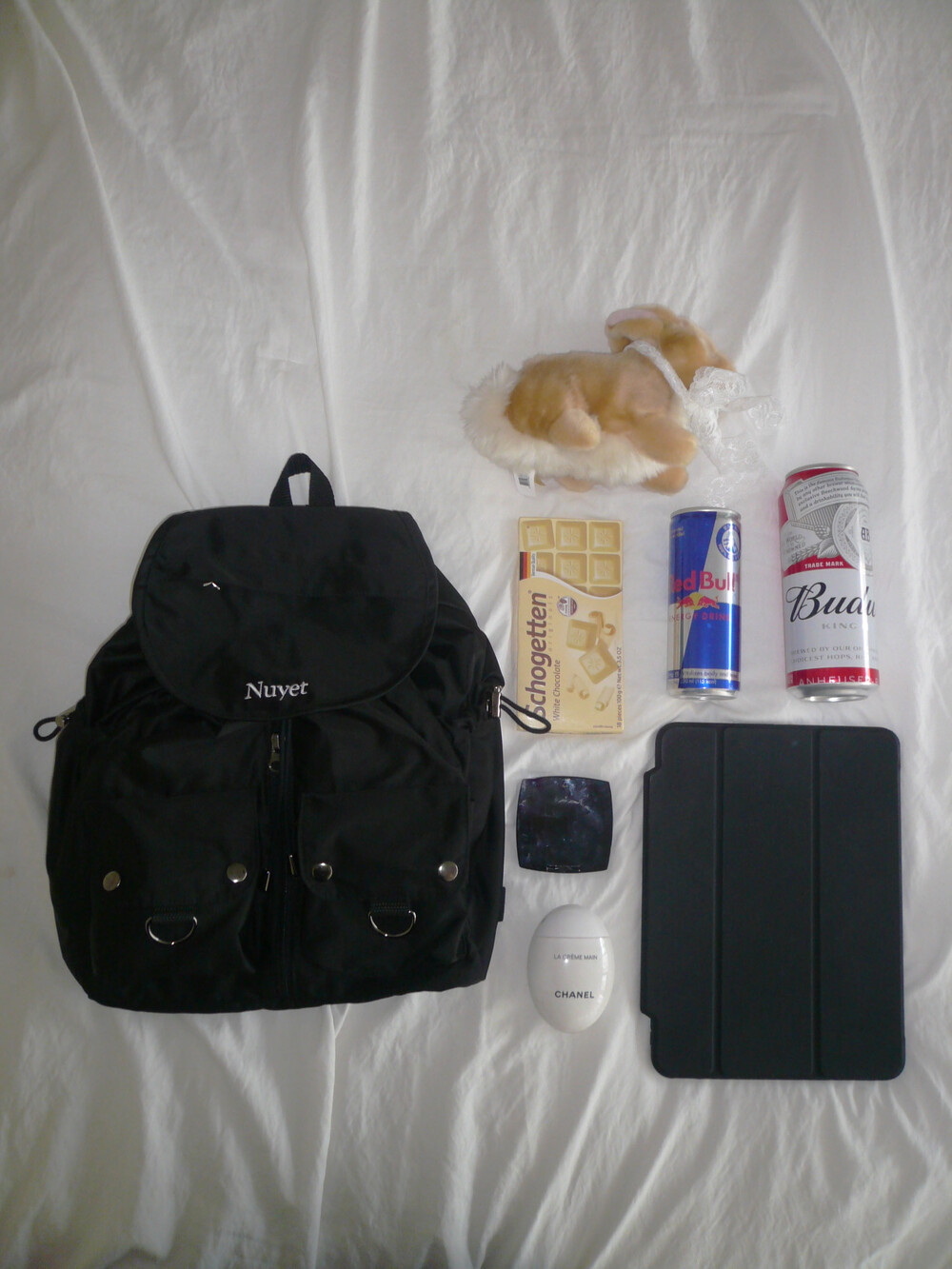 - 은은한 광택이 도는 폴리 원단 - 내부 수납공간 - 양 사이드포켓 - 아이패드 12.9인치, 맥북 13인치 수납 가능 - 바닥 부분 누빔 솜 - 앞 라운드 포켓 - 라운드 포켓 사이 수납 공간