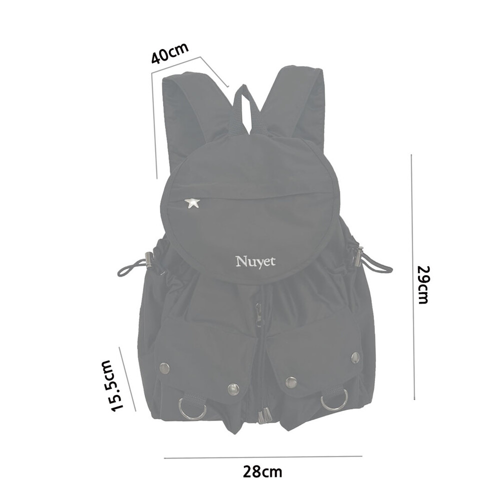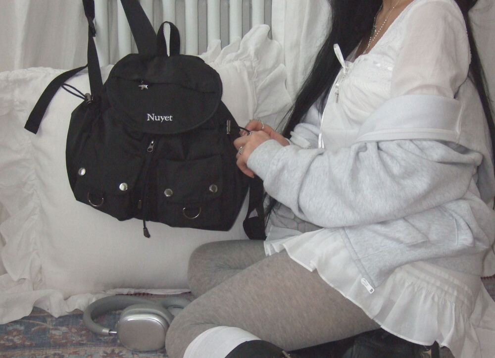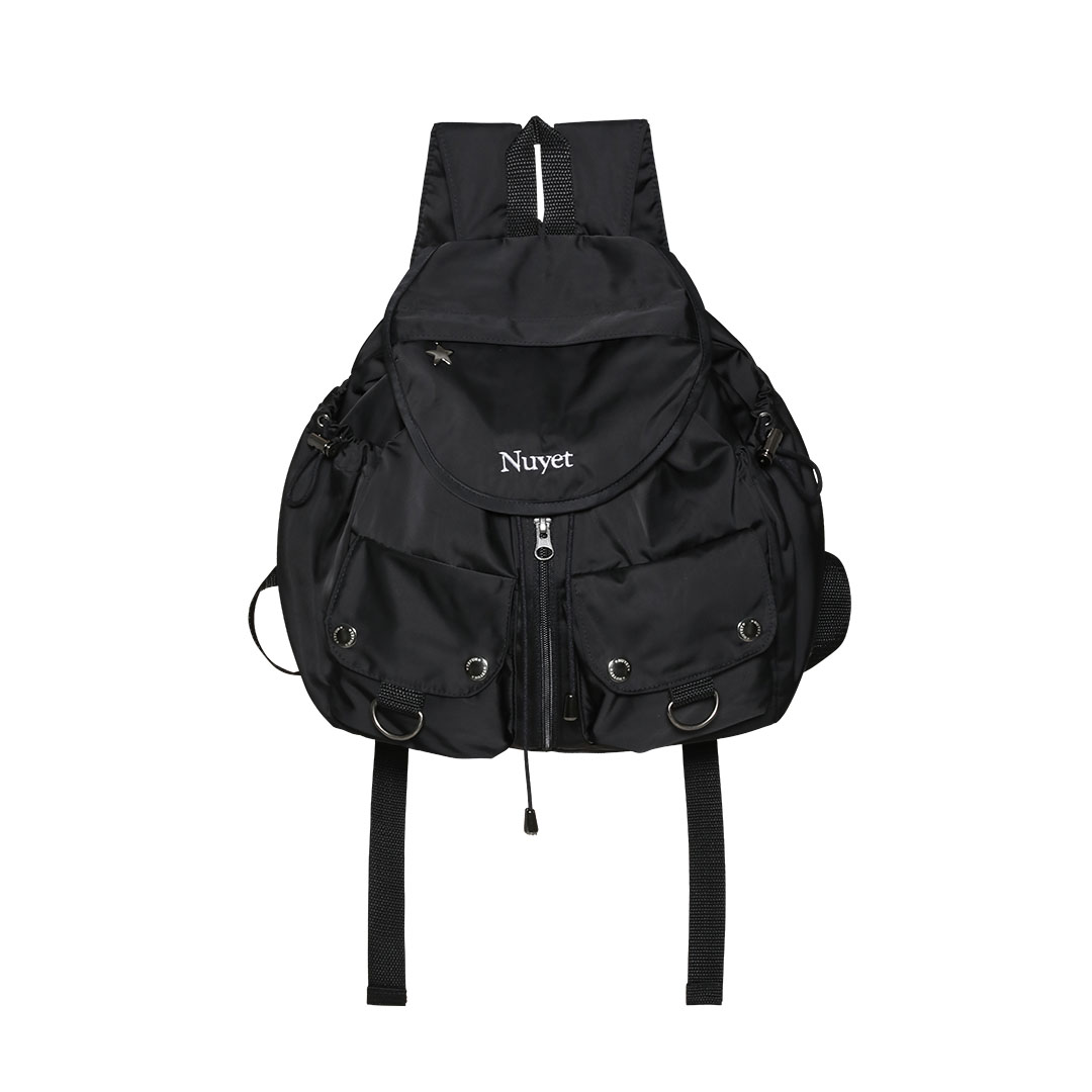 많이 넣을수록 둥글어지는 형태가 귀여운 백팩입니다. 귀여우면서 둥근 느낌으로 제작하고 싶어 단단한 원단보다 원단이 조금 얇지만 튼튼한 원단을 사용하여 제작하게 되었습니다. 앞쪽 자수 디테일과 별 모양 지퍼가 매력적인 제품입니다.
