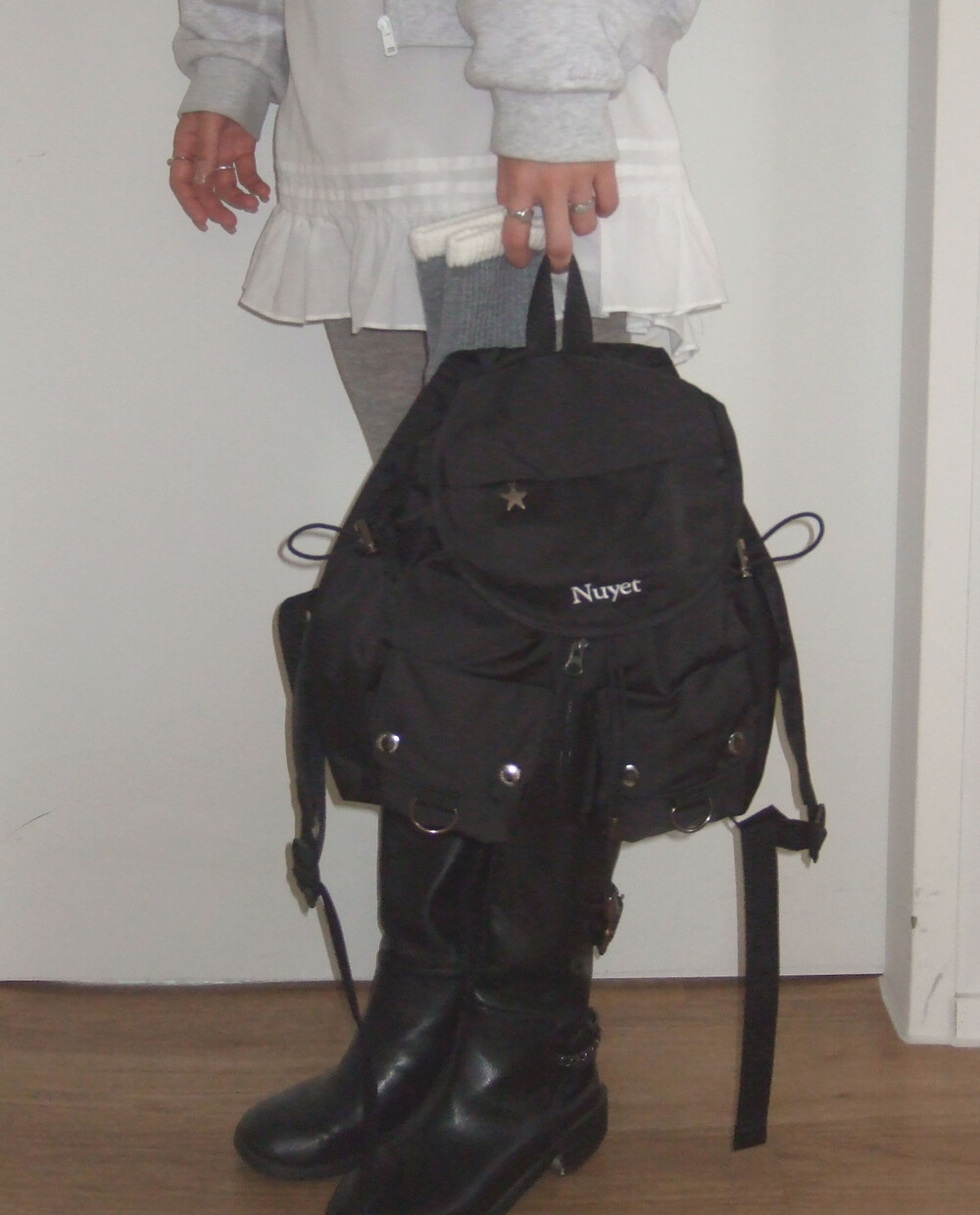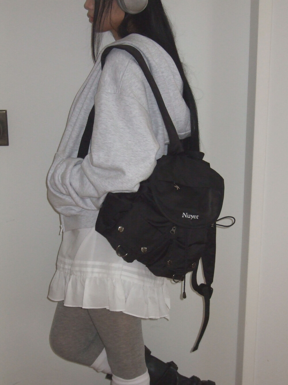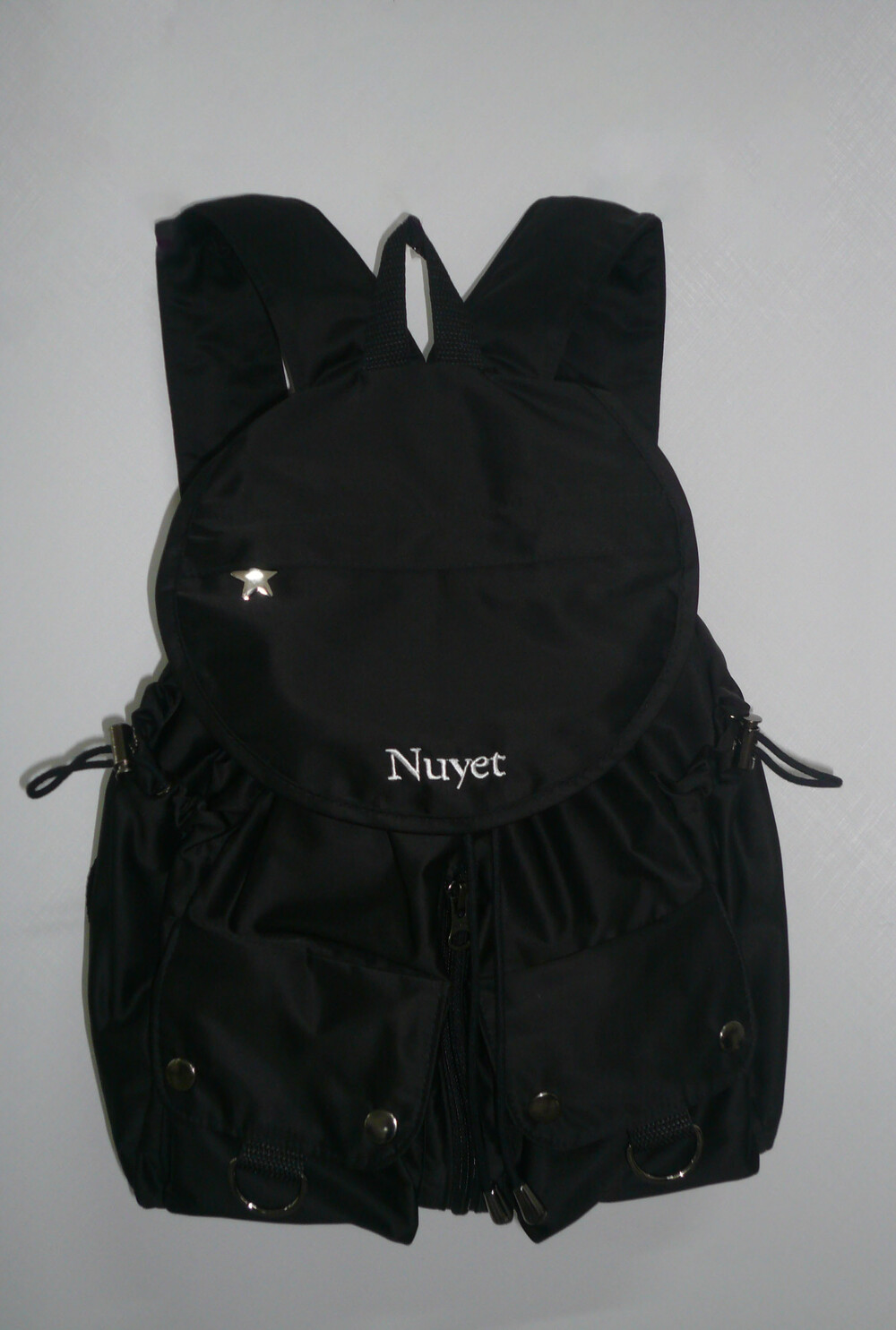 많이 넣을수록 둥글어지는 형태가 귀여운 백팩입니다. 귀여우면서 둥근 느낌으로 제작하고 싶어 단단한 원단보다 원단이 조금 얇지만 튼튼한 원단을 사용하여 제작하게 되었습니다. 앞쪽 자수 디테일과 별 모양 지퍼가 매력적인 제품입니다.