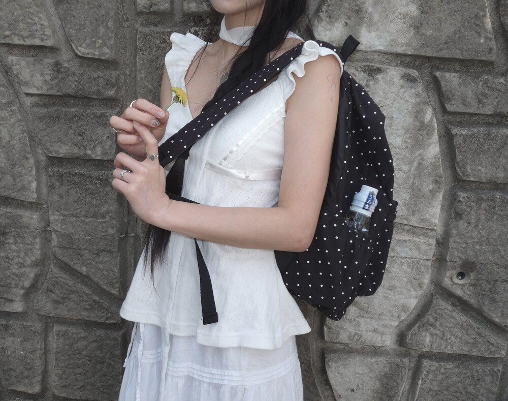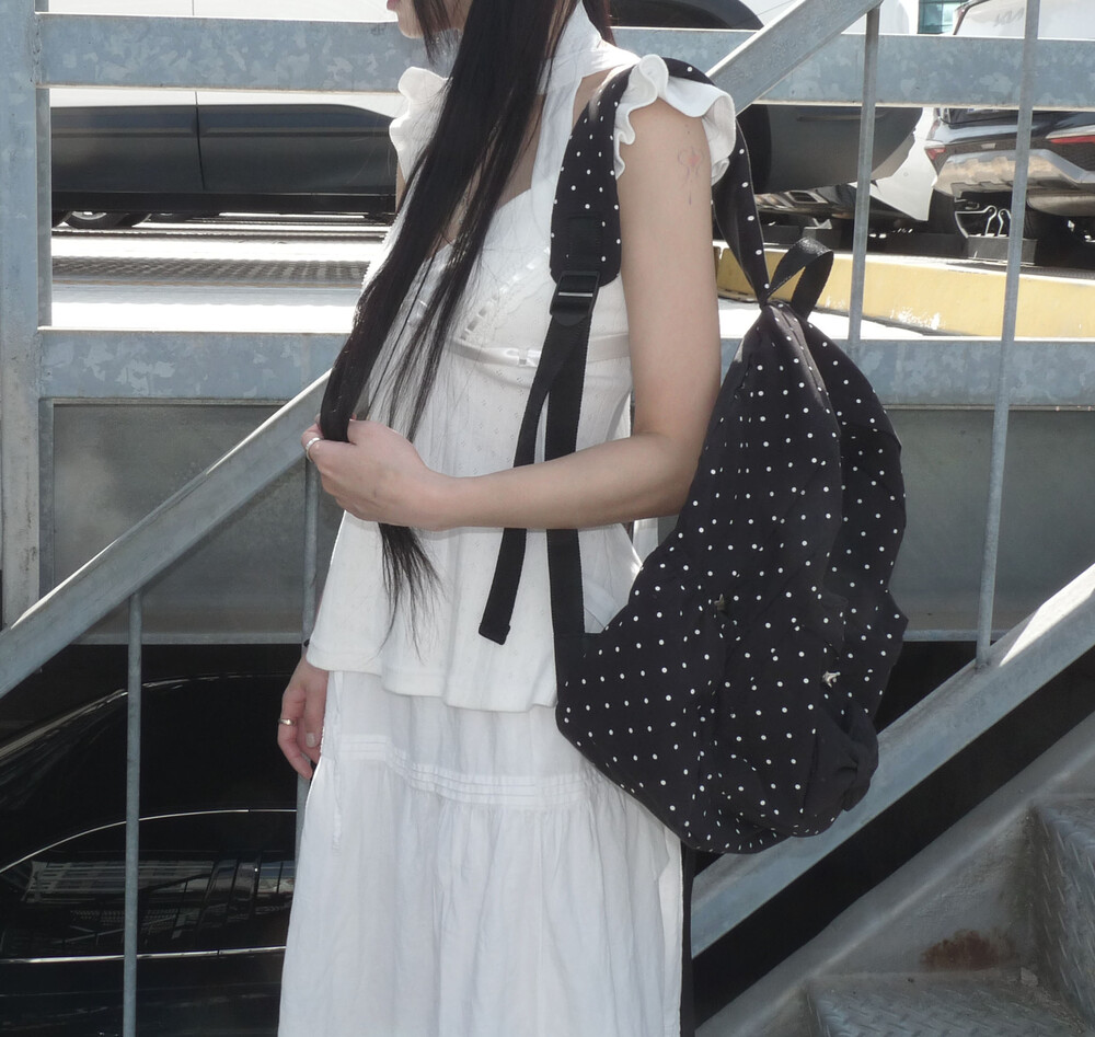 - 등판과 끈 뒷부분은 나일론 원단으로 처리되어 이염을 방지하였습니다.