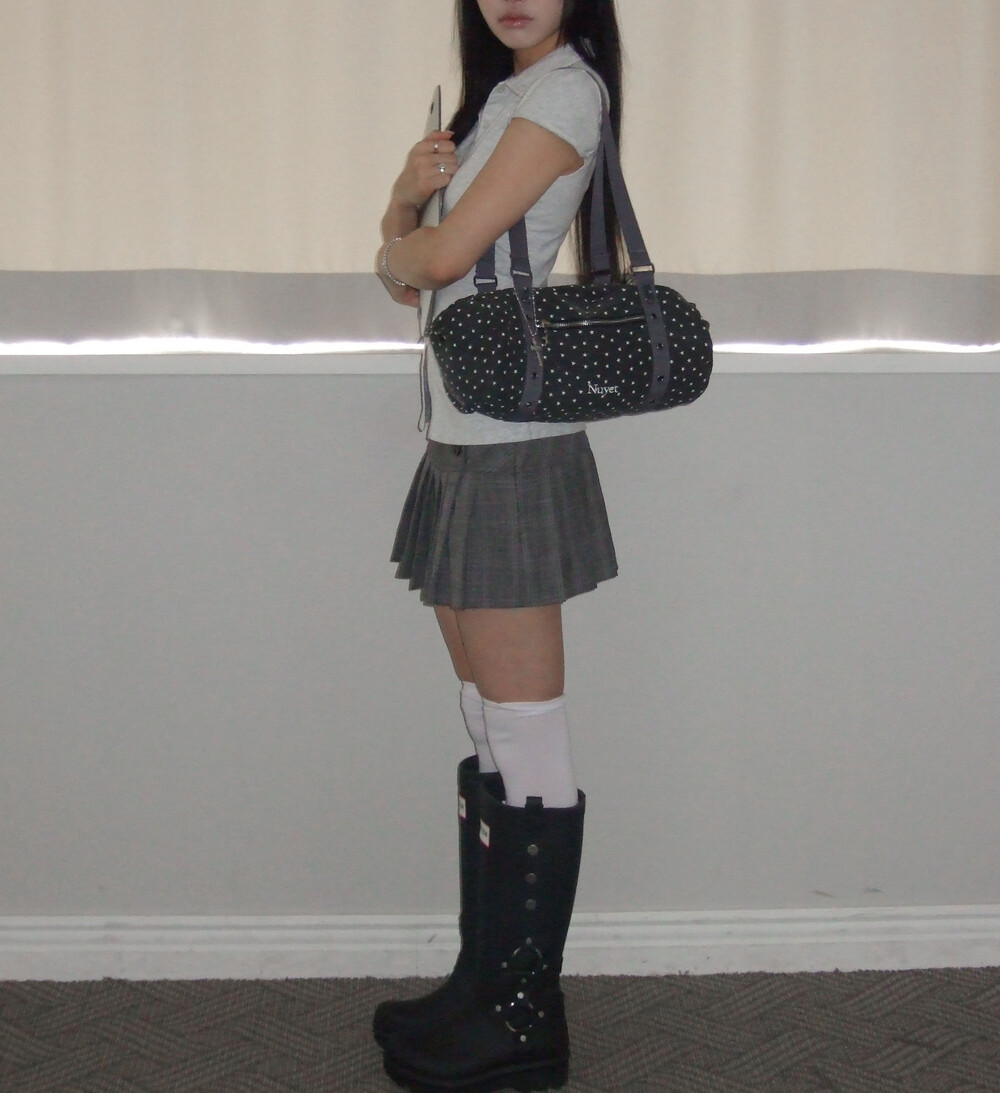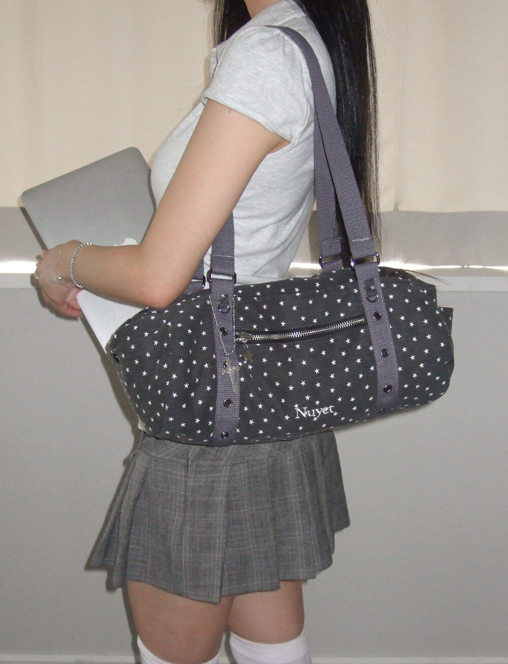많이 넣을수록 자연스럽게 둥글게 잡히는 실루엣이 매력적인 보스턴백입니다. 납작하고 둥근 형태로 부담 없이 들기 좋으며, 별 프린트 원단과 사랑스러운 쉐입이 어우러져 귀여운 무드를 더해줍니다.